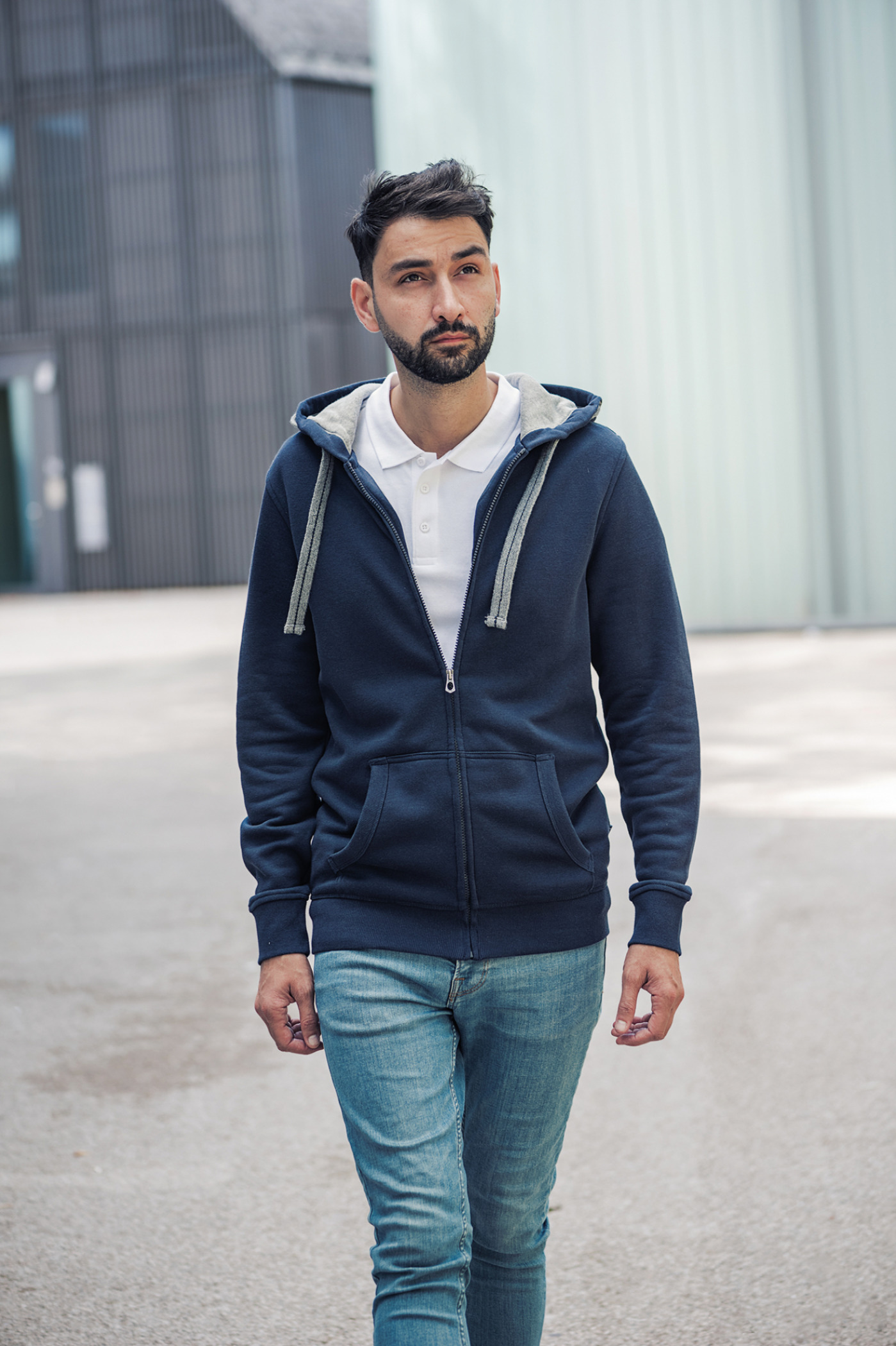 Weiches Mischgewebe | Figurbetonter, moderner Schnitt | Sehr glatte Oberflächenstruktur mit angerauter Innenseite | Kapuze mit mittig bestickter, flacher Kontrast-Kordel und Kontrast-Innenfutter | Beidseitig je drei HRM-Metall-Ösen | Verstärktes, farblich passendes Nackenband | Hochwertiger Reißverschluss mit besonderem HRM-Metall-Schieber | Saum und Abschluss von Taschen und Ärmeln aus elastischen 2×2 Ripp-Strick-Bündchen | Gewebtes Fair4All Flaglabel in der linken Seitennaht | BSCI zertifizierte Produktion